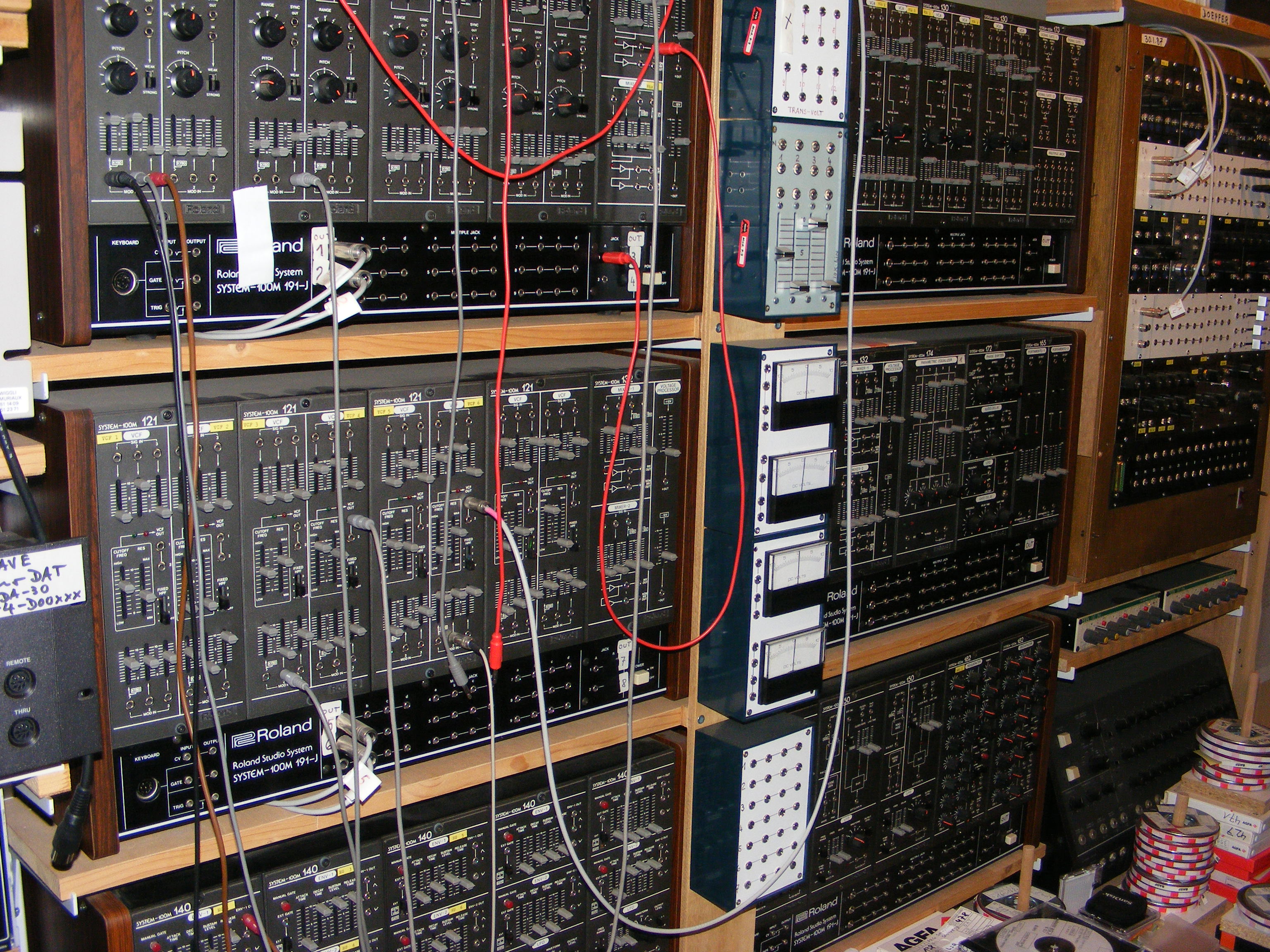 Pour illustrer certaines de ses explications, Oscar Wiggli nous fait visiter son Studio Son, un peu plus loin dans le labyrinthe des escaliers et des ateliers. L'endroit est impressionnant de technicité, avec un mur couvert de synthétiseurs modulaires, de DAT et d'autres engins mystérieux. Nous avons même droit à un petit aperçu du travail actuel d'Oscar, qui prépare un nouveau CD.